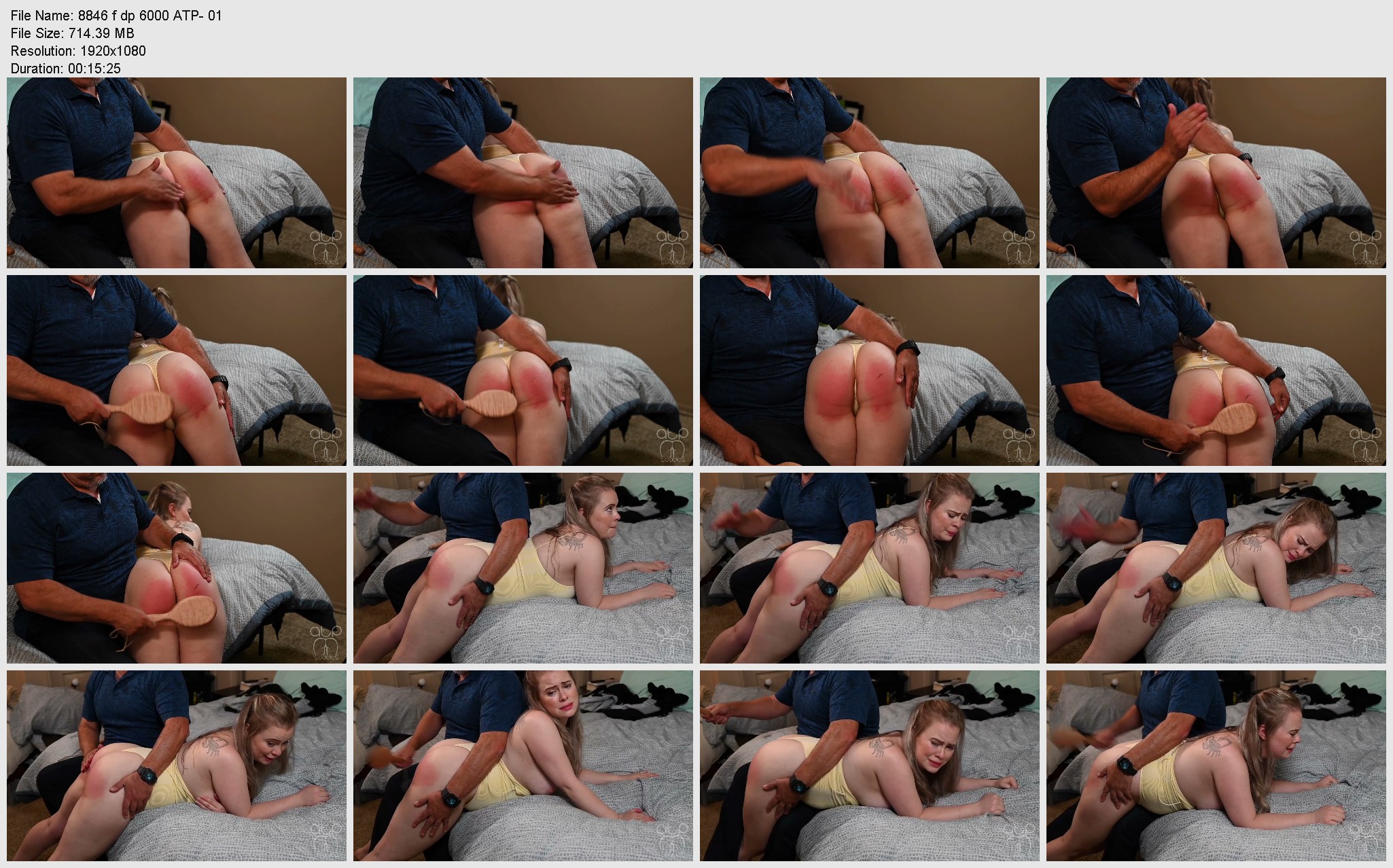 Spread across her step dad’s knee, he spanks her perky round bottom as she continues to talk back haughty and defiant. His hand stings, but is not getting the reaction he desires, picking up the hairbrush paddle. Leg locked across his lap, he sets about spanking the defiance and slutty behavior out of his wayward step daughter. Hard splats of the round paddle bounce from cheek to cheek as Stevie cries out loudly.